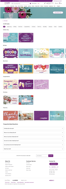 Rebuild gift card landing pages to make them scalable and flexible; make shopping flow and underlying structure consistent across Wayfair brands and international geographies